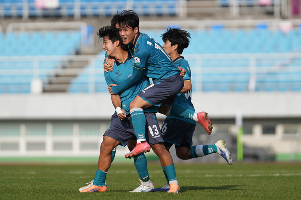 전반 추가시간, 마침내 김건오의 발끝이 수원의 골망을 흔들었다. 프리킥 기회에서 키커로 나선 김건오가 골문 왼쪽 상단 구석을 향해 날카롭고 빠른 킥으로 그물을 흔든 것이다.