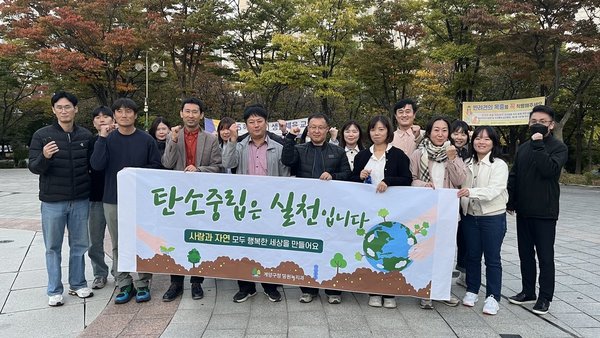 구는 지난 10월 23일 주요 공원 일대에서 국산 목재 사용 활성화 캠페인을 실시하며 국산목재가 탄소를 저장하고 온실가스 감축에 기여하는 탄소흡수원임을 적극 홍보했다.