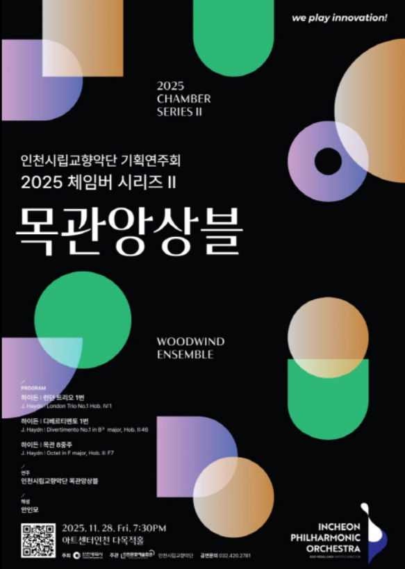 [경인신문-이광일 기자] 인천시립교향악단이 다가오는 11월 28일 금요일 오후 7시 30분, 아트센터인천 다목적홀에서 기획연주회 ‘2025 체임버 시리즈 Ⅱ – 목관앙상블’을 개최한다.