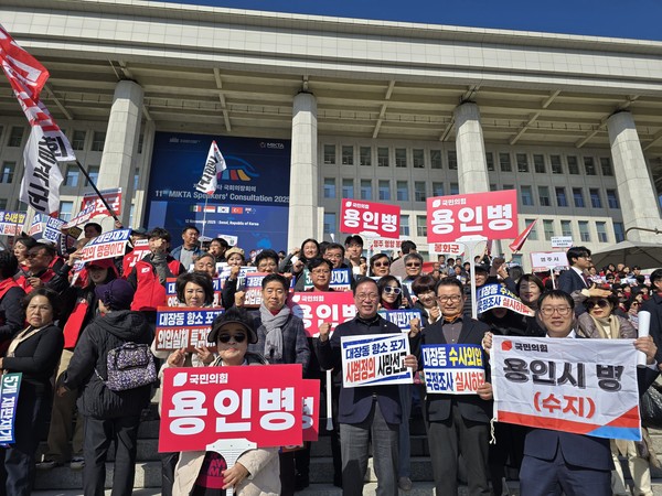 [경인신문=최철호 기자]국민의힘 용인시병 당원협의회(위원장 고석)는 12일 오전 국회 본관 앞에서 열린 '대장동 일당 7400억 국고 환수 촉구 및 검찰 항소 포기 외압 규탄대회’에 참석해 중앙당과 함께 진실 규명과 특검 추진을 강력히 촉구했다.