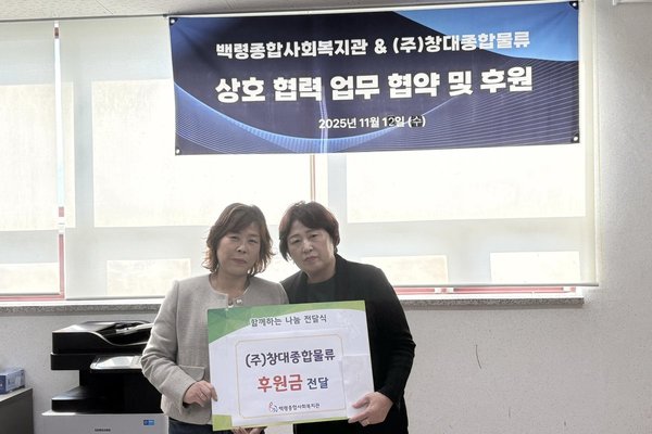 이날 ㈜창대종합물류는 협약과 함께 백령도의 복지 증진을 위한 후원금 전달도 진행하며 지역사회와의 동반 성장을 다짐했다.