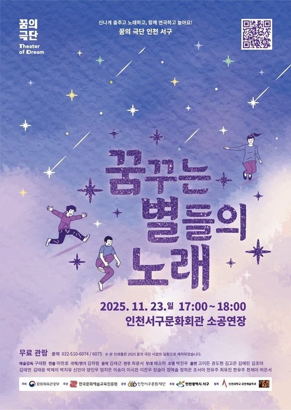 인천서구문화재단 관계자는 “이번 공연은 단원들이 단순한 무대 경험을 넘어, 예술을 통해 협력과 표현의 기쁨을 배우는 소중한 시간이 될 것”이라며 “서구 아동·청소년의 꿈을 응원하고 격려하기 위해 지역사회의 많은 참여를 바란다”고 전했다.
