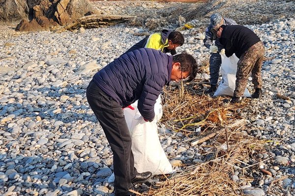 이번 전화 활동은 해군 부대원, 이장협의회, 의용소방대원, 면 직원 등 약 60여명이 참여한 가운데, 관광객 등 방문객이 많이 찾는 능동자갈마당 일대에 방치된 각종 쓰레기 약 10톤을 수거하는 정비 작업으로 진행됐다.