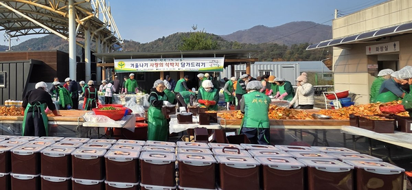 이번 행사에는 각 읍면 새마을지도자 100여명이 참여해 추운 날씨 속에서도 이른 아침부터 무 3,000여개를 손질하고 버무리며 석박지 800여 통을 정성껏 준비했다.