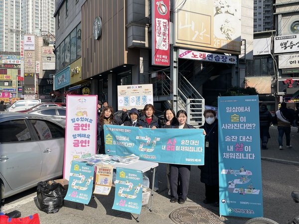 또한 캠페인 참여자들에게 11월 음주폐해예방의 달 기념 워크온 챌린지를 안내하며 건강생활 실천 향상을 독려했으며 쓰레기 무단투기 예방을 위해 자원순환과와 협력한 환경정화 홍보도 함께 진행했다.