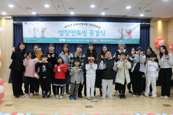 [ 경인신문= 최철호 기자] 용인시처인장애인복지관(이선덕 관장)은 11월 21일, ‘2025년 장애가정아동 성장멘토링 종결식’을 성황리에 개최했다. 본 사업은 ‘우정사업본부’가 주최하고 ‘우체국공익재단’ 및 ‘한국장애인재활협회’가 공동으로 주관하는 사업으로 복지관은 2014년부터 지속적으로 운영하고 있다.