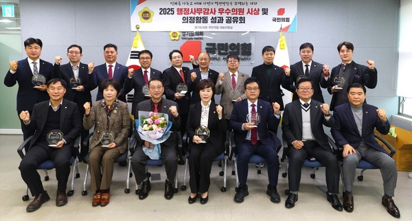 [ 경인신문= 하재봉 기자] 경기도의회 경제노동위원회 정하용 의원(국민의힘, 용인5)은 24일(월), 국민의힘 회의실에서 열린 ‘2025년 행정사무감사 우수의원 시상식’에서 행정사무감사 우수위원으로 선정되었다. 이번 선정은 행정사무감사 기간 동안 도민생활과 직결된 핵심 현안들을 면밀히 점검하고, 구조적 문제를 드러내는 데 기여한 점이 높게 평가된 결과이다.