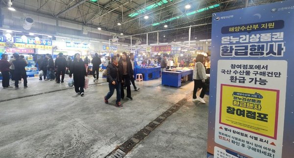 수산동 26개 점포가 참여한 이번 행사는 국내산 수산물 구매 시, 구매 금액의 최대 30%를 온누리상품권으로 환급하는 혜택을 선보였다.