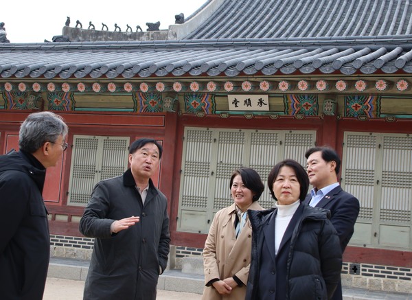 더불어민주당 김준혁 국회의원(수원정, 국회 교육위원회)은 국회의원 연구단체 일정으로 오늘 오전 경복궁 일원을 방문했다고 밝혔다. 이번 궁능 답사에는 연구 책임의원 김준혁 의원을 비롯해 더불어민주당 추미애‧박지혜‧손명수‧조계원 의원 등 ‘문화예술살롱’ 회원이 참여했다.