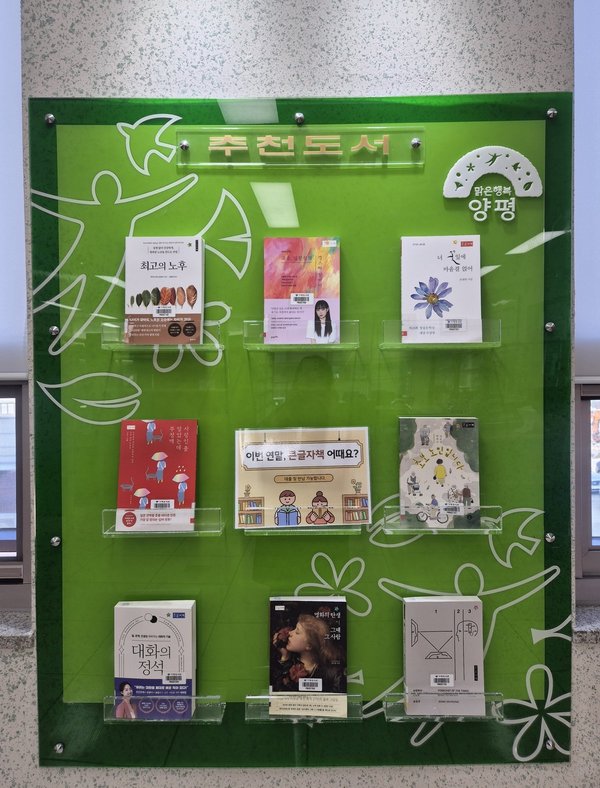 전진선 양평군수는 “큰글자도서 추천 서비스를 통해 독서 선택의 어려움이 해소되고, 군민들이 평생 독서습관을 형성하는 데 도움이 되길 기대한다”고 전했다.