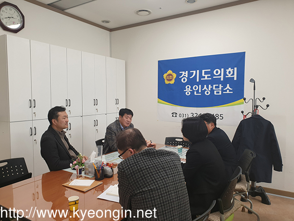 경기도의회 용인상담소에서 지난 18(월) 오후 경기도의회 고찬석 도의원(더민주, 용인8)이 용인시청 교육청소년과장, 용인교육지원청 장학사, 표창원 의원실 최대규 보좌관 등 4명과 함께 용인 혁신교육지구 추진현황 파악을 위한 간담회를 개최하였다.