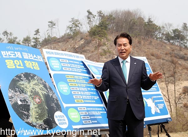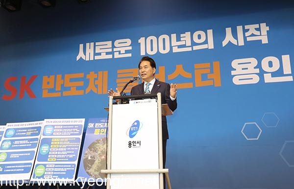 백군기 용인시장은 27일 SK하이닉스 반도체 클러스터 조성 산업단지 특별물량 배정이 최종 승인된 직후 원삼면 용인시축구센터에서 기자회견을 열고 산단 조성과 관련된 비전을 밝혔다.