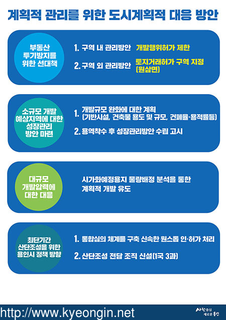 이와 관련해 시는 클러스터 조성을 위한 인·허가 과정에 소요되는 시간과 절차를 최대한 줄일 수 있도록 통합심의를 통해 각종 행정절차를 원스톱으로 처리하겠다는 방침을 밝혔다.