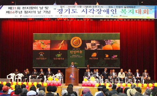 제31회 흰지팡이의 날 및 제84주년 점자의 날을 기념하는 경기도 시각장애인복지대회가 12일 안성시 실내체육관에서 개최됐다.