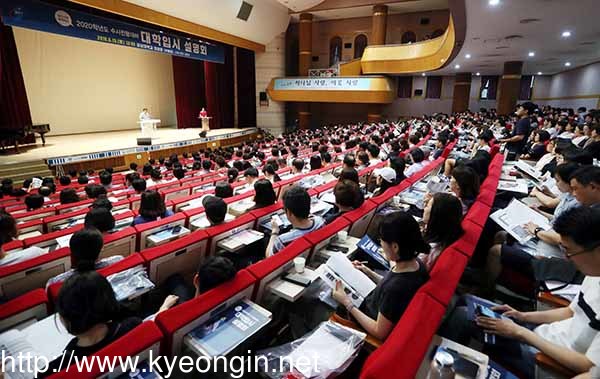 용인시가 15일 강남대학교 우원관에서 개최한 ‘2020학년도 대학입시설명회’에 지역의 고등학생과 학부모 1500여명이 몰려 뜨거운 관심을 보였다.