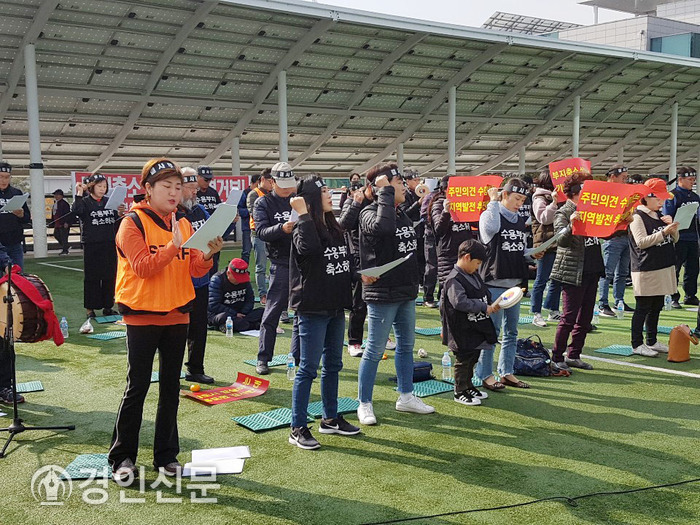 ![]() ▲ 시청앞에서 집회를 하고 있는 원삼면주민통합대책위원회 © 경인신문 |