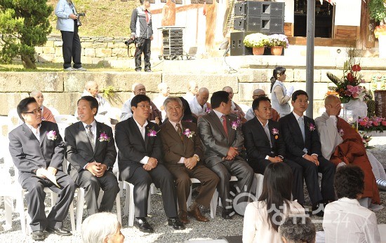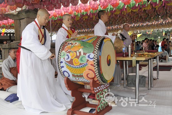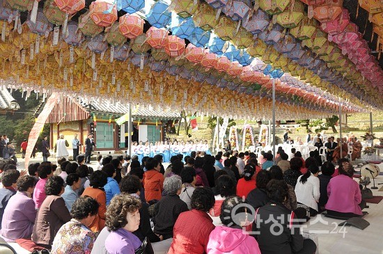 16일 오전 안성시 죽산면 칠현산 칠장사(주지 지강스님)의 ‘칠장사 중창조 혜소국사 헌다례’가 범패스님들을 비롯한 500여 명의 신도들이 동참한 가운데 칠장사 대웅전 뜰에서 엄숙한 분위기 속에서 봉행됐다.