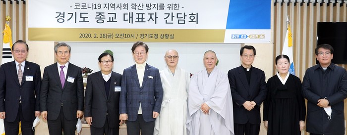 이재명 경기도지사가 코로나19 차단을 위해 경기도내 대표 종교인들을 만나 집단 행사를 자제해 줄 것을 요청했다.