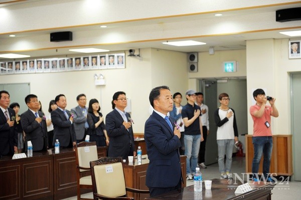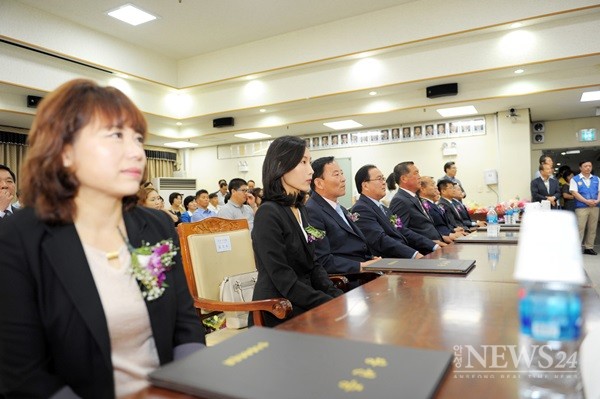 시청 4층 대회의실에서 가진 당선증 교부 식에는 황은성 시장 후보와 시·도 의원 및 비례 당선자를 비롯한 관계자 등 200여명이 모여 당선증을 받는 당선자들을 축하했다.