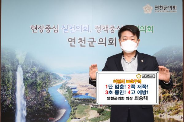 최숭태 의장은‘1단 멈춤, 2쪽 저쪽, 3초 동안, 4고 예방’구호와 함께 ‘안전 괄호 포즈’를 취하며 “어린이들의 안전과 행복을 위해 참여한 이번 챌린지를 통해, 어린이 교통안전에 대한 관심이 늘어나는 계기가 되길 바란다”며 “연천군의회에서도 교통안전정책을 위해 더욱 연구할 것이며 어른들의 관심과 노력만이 아이들을 위험에서 지켜낼 수 있을 것이다”고 전했다.